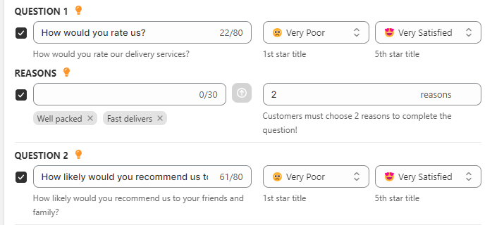 You can choose some factors to show including: Star-rating result, Additional comment, customer name, review created time, courier